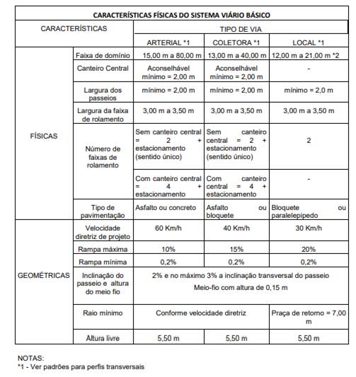 CARACTERÍSTICAS FÍSICAS DO SISTEMA VIÁRIO BÁSICO
